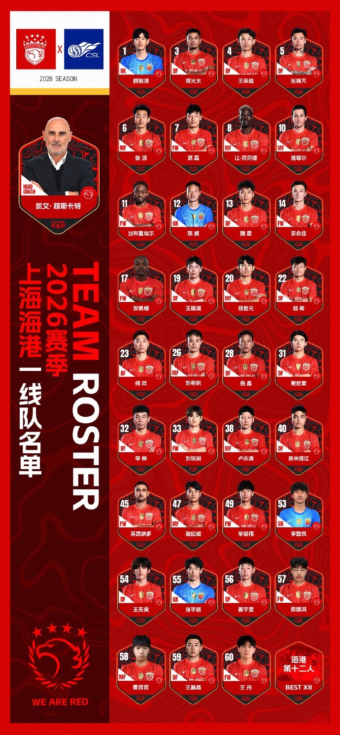 3月5日讯 新赛季中超联赛即将拉开帷幕,海港公布新赛季一线队名单,武磊7号、克劳德8号、蒯纪闻47号,无梅伦多。