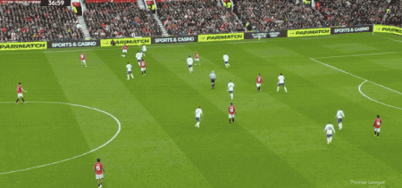 第53分钟,马丁内斯扑出姆伯莫的射门,曼联获得角球,B费主罚,卡塞米罗前点头球攻门,打破僵局。